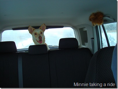 She rode fine in the car all the way home. She enjoyed looking out the window and seeing stuff go by. Once home she ran circles in the backyard, and enjoyed playing with our dogs.
